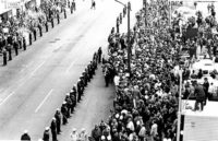 On December 2, 1964, Mario Savio, an activist and key member of the Berkeley Free Speech Movement, gave an address on University of California, Berkely’s campus at the Sproul Hall sit-in. Many students, including Savio, had spent the previous summer in Mississippi, participating in what became known as the “Freedom Summer” and helping to register Black sharecroppers to vote. These students then began fighting for the necessity of Free Speech on college campuses. In this address, Savio detailed two different ways in which civil disobedience can occur and previewed the direct actions that were about to take place in the storming of Sproul Hall to fight against the restrictions on political speech and actions on campus.