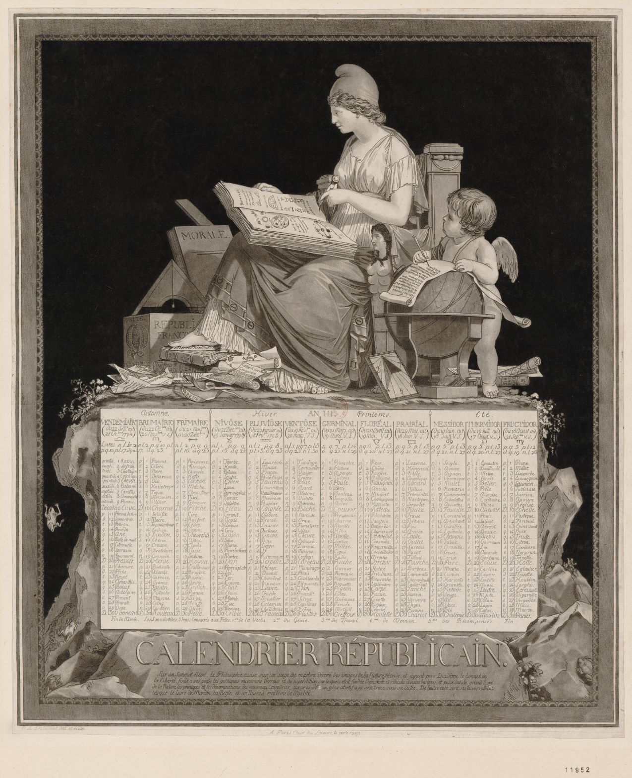 1700-1830s, Date, Time InterruptedIn October 1793, the French National Convention ordered the use of the Republican Calendar to replace the Gregorian Calendar. The Republican Calendar was made to depict agrarian imagery and dismantle the lies of the throne and church.